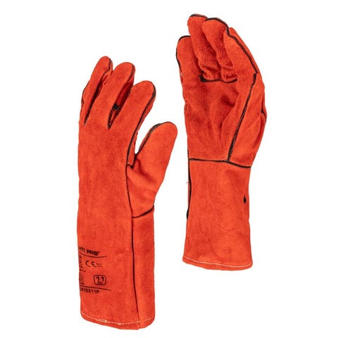 Kestävät 35 cm haljasnahkaiset hitsauskäsineet vaativaan käyttöön. Erinomainen kulutus-, lämpö- ja kipinänkestävyys tekevät niistä luotettavan valinnan ammattihitsaukseen. Koko 11 (XL).