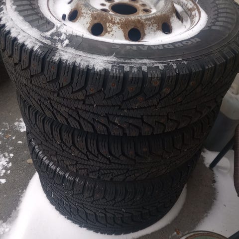 Myydään hyväkuntoiset Bridgestonen nastarenkaat peltivanteilla.