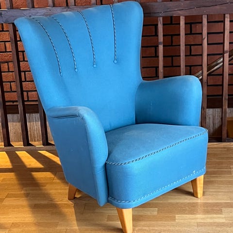 Myydään vanha Askon valmistama nojatuoli n. 1940–50-luku.