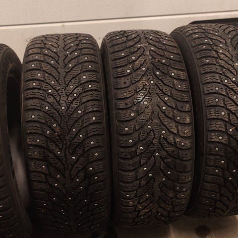 Hyväkuntoiset nastarenkaat Nokian Hakkapeliitta 9.koko 205/60/16".pintaa +6mm kaikissa,nastat ok.(4kpl). Myös rengastyöt.