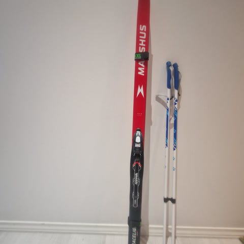 Myydään 146 cm pitkät lasten Madshus XC Racelight karvapohjasukset ja sauvat