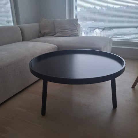 Vuoden vanha Elloksen sohvapöytä (ovh 129,99€). Erittäin hyvässä kunnossa. Päällä oleva lasi lähtee nostamalla irti eli helppo putsata molemmin puolin. Kevyt mutta tukeva pöytä.