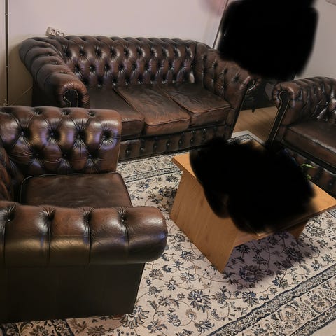 Sohvassa keskimmäisessä tyynyssä hiukan kulumaa.