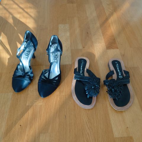Mustat Tamaris sandaalit, koko 38. Kiilakorko luo illuusion korkinvärisestä korosta. Muutaman kerran käytetty.
