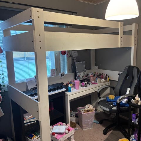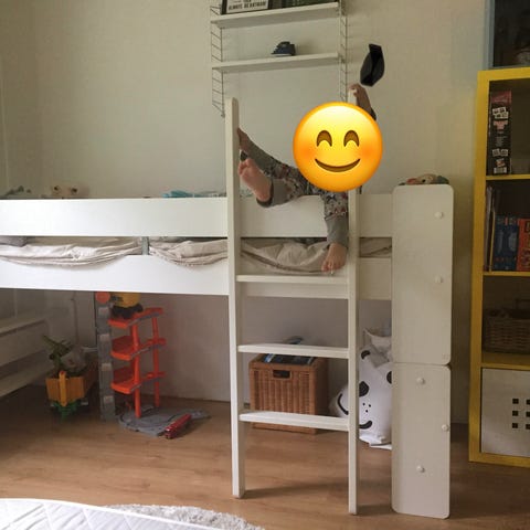 Pituus 208cm, korkeus 186cm, leveys 87cm/tikkaiden alapäästä 130cm. Sisältää tikkaat ja työtason. Patjan saa halutessaan mukaan.