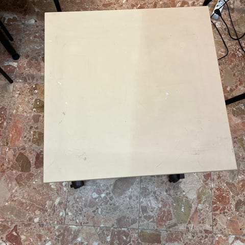 Hyväkuntoinen työpöytä. Mekaaninen korkeudensäätö mahdollisuus. Alla rullat. Ei naarmuja tms.