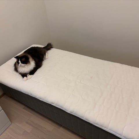 Hyväkuntoinen sänky, jossa kätevät laatikot alla. 90x200cm. Sänky on tavallista korkeampi. Mukaan saa säleikön.