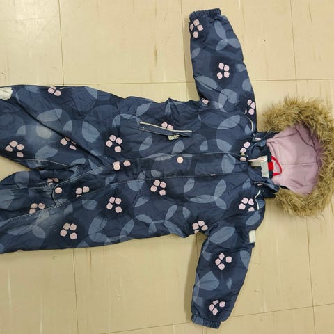 Vihreä Reima talvihaalari koossa 86. Muuten hyväkuntoinen, mutta polvet ja takapuoli värjäytyneet (kts.kuva) sekä toisessa haarassa pieni reikä (kts.kuva). Menee hyvin vielä esim.varahaalarina tai rymykäytössä.