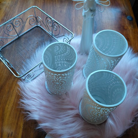 Myydään maljakko/lasiastia koristekivillä. Käytetty lyhtynä