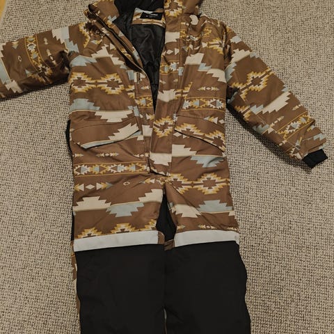 Toppahaalari koko 122. Heijastinnauhoissa pientä kulumaa, muuten kuin uusi.