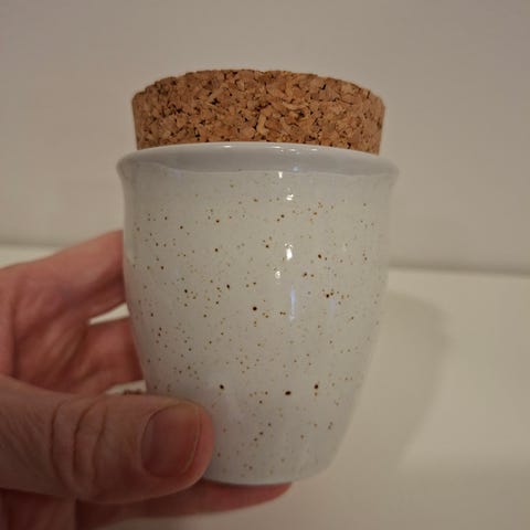 Iso ja pieni keltainen kannellinen purkki. Isompaa voi käyttää myös maljakkona.