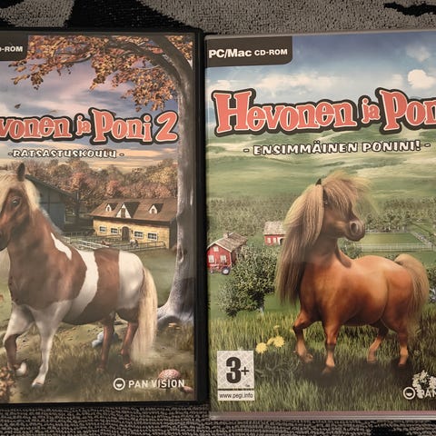 PC/Mac tietokone peli. Hevonen ja poni 2 ratsastuskoulu. 3+. Siistikuntoinen, pieniä jälkiä.
