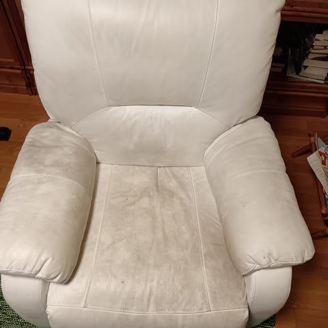 Nahkainen tuoli, käytön jälkiä on, mutta toimii.