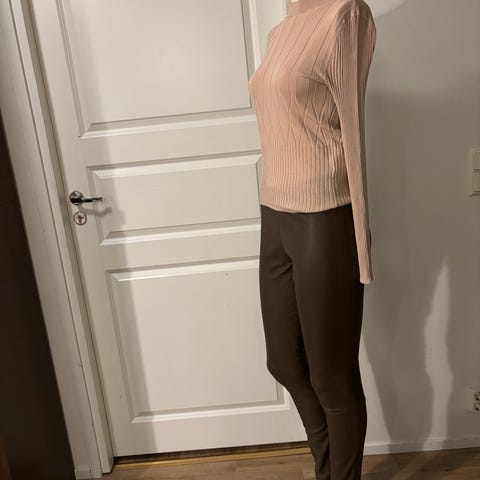 Nupukkinahkaiset beiget/vaalean ruskeat housut. Koko 36. Vähän köytetty by Malene Birgerin housut. Uutena housut maksavat 800 euroa.