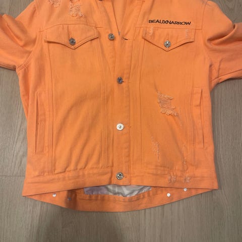 Musta hyvä kuntoinen farkkutakki. Hihoissa menee punainen raita. Lisä tietoa saat kysymällä!