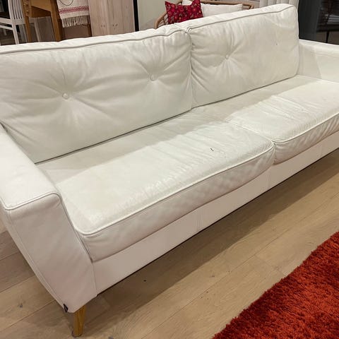 Aitoa nautakarjan pintanahkaa, joka kestää käytössä vuosikausia. Ovat olleet lapsiperheen pelastus! Eivät ole uudet mutta edelleen hyvät ja toimivat kovaan käyttöön. Kiinteät istuintyynyt, eivät siis irtotyynyjä. Mielellään myydään molemmat samalla kertaa. Toki aina saa ehdottaa muitakin järjestelyjä. Vain haku.