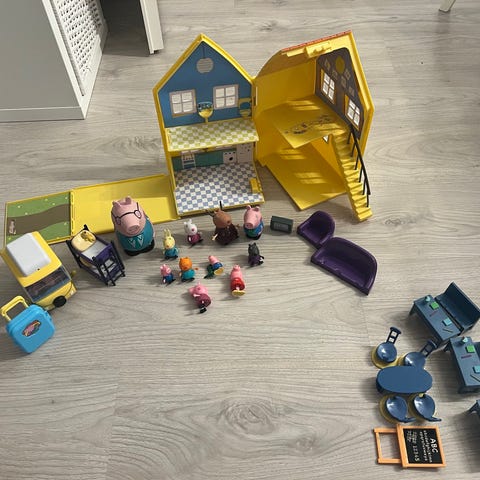 Pipsa Possu leikkitalo sisältää monikerroksisen talon, jossa on kalusteita ja erilaisia huoneita. Pakettiin kuuluu myös useita hahmoja ja lisäosia, kuten junavaunuja ja huvipuistolaitteita. Hp. 40e