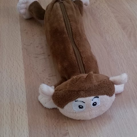 Apsi Deisi nukkepehmo. Hyväkuntoinen. Korkeus n. 31cm hiuksien yläpuolelle, leveys n. 23cm. Tikkurasia antaa osviitta koosta.