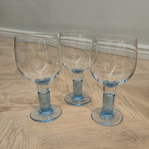 Bormioli Rocco, Thema, viinilasi, jalkalasi, Italia, vintage, retro, sininen jalka, 80-luku, 90-luku