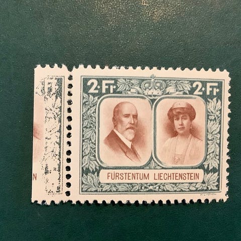 Liechtenstein 1912 - 25 Heller ultramrijn Vorst Johann keskitetty ja hyväksytty