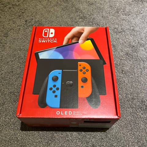 Nintendo Switch OLED, kuljetuskotelo ja 128gb muistikortti