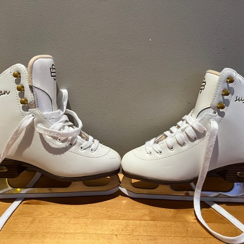 Todella hyvässä kunnossa ja terässä olevat tyttöjen Susan-merkkiset kaunoluistimet. Löytyy myös samanlaiset kokoa 35.