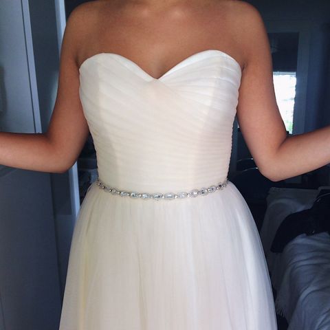 Zazabella ilta- tai juhlapuku, koko S, valmistettu vaaleanpunaisesta sifongista. Puvussa on korsettimainen yläosa ja koristeellinen vyötärönauha, joka lisää tyylikästä ilmettä. Takana on nyöritys, joka mahdollistaa istuvuuden säätämisen.