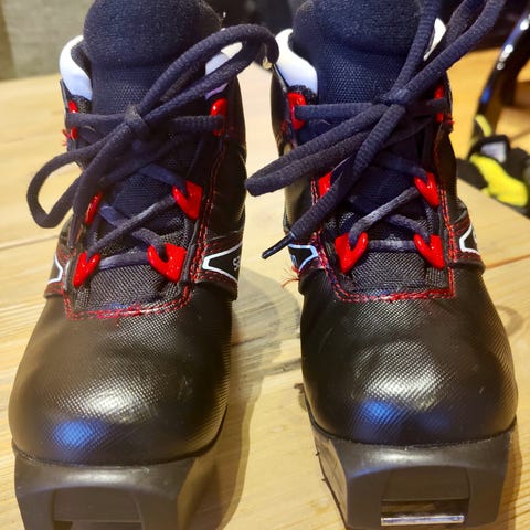 Hyväkuntoiset lasten hiihtomonot, koko n. 29-30. Pohjallisen mitta 18,5 cm. SNS-kiinnitys.