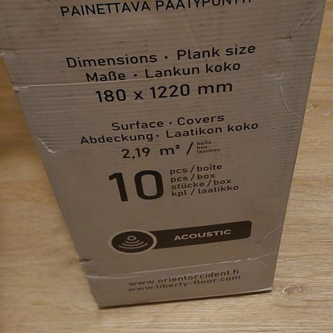 Täysin uutta vinyylilankkua, 4pkt joista yhdestä otettu yksi lauta, eli yhteensä ~8,5m2. Jäi ylimääräiseksi remontista eikä palautusoikeutta koska tilaustavaraa. Ovh. tälle määrälle 262,64e eli halvalla uutta tavaraa. Sävy Boston.