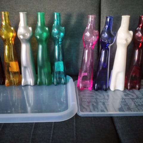 Myydään 3 kpl sinisiä kissapulloja. Tarrat pulloissa. Vuodet 1998, 1999 ja 2000. Upea sisustus elementti lisäämällä valon pullon sisään. Nouto Haminan keskustasta, maksu mobilepay tai käteinen: