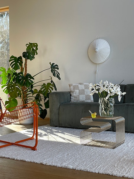 Napakka käsinkudottu rakenne pitää maton ryhdikkäänä arjen käytössä. Se toimii erinomaisesti olohuoneessa, makuuhuoneessa tai ruokailutilassa, missä kaivataan pehmeää tunnelmaa ja selkeää, ajattomaa ilmettä.