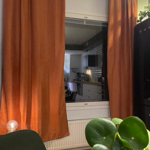 Mittatilaus, ripustusvalmis ja täysin UUSI vastaava pimennysverho Eurokankaasta, molemmilta puolilta kaunis samanlainen sävy. Ei tarvetta toiselle verholle joten myydään käyttämättömänä paketissa, ostettu Eurokankaasta 11/25, kangas DORA ja sävy beige. Kaksi verhoa ommeltu yhteen, sis WAWE TAIFUN-verhonauhan ommeltuna.