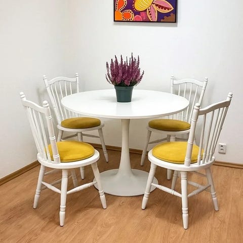 🍽️ Hyväkuntoinen Valkoinen Pyöreä Ruokapöytä on myytävänä.