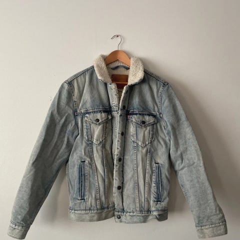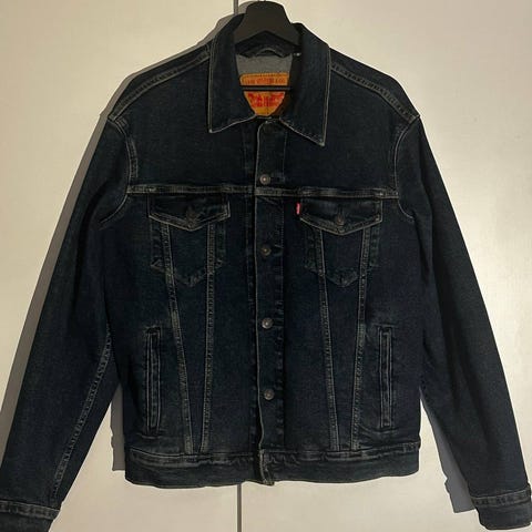 Leviksen tumma farkkupaita. Viimeinen nappi on tippunut, mutta paidassa on varanappi jos haluaa korjata. Rento istuvuus