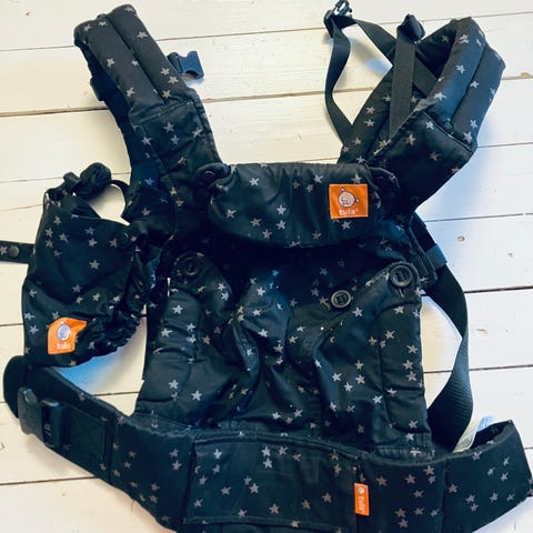 Muutamia kertoja käytössä ollut. Meillä lapsi viihtyi paremmin vaunuissa, niin käyttö jäänyt vain muutamiin kertoihin. Mukana lisähuppu.