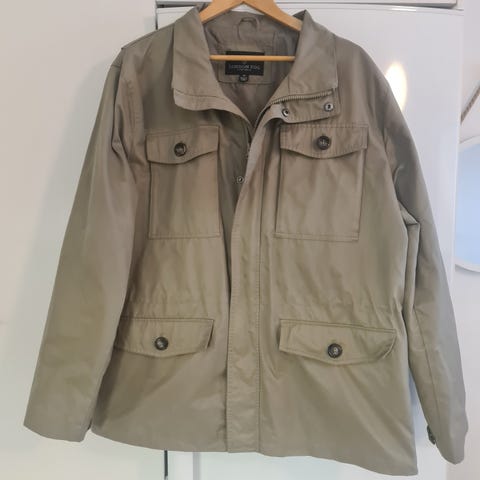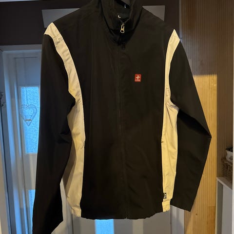 Tässä tarjolla miesten golf sadeasu, jonka koko on L. Vaate on ostettu Portugalista, siksi tässä tärkeimmät mitat. Pusero: hartialeveys 50 cm, kainalon ympärys 128 cm, kokonaispituus niskasta 70 cm, pystykaulus 10 cm, hihan pituus 63 cm, jossa 5 cm:n resori. Housut: kokonaispituus vyötäröltä 110 cm, vyötäröstä haaraan 35 cm, lahkeen ympärys leveimmältä kohdalta 72 cm, vyötärön ympärys 80 cm (venyy noin 10 cm), lahkeen ympärys 52 cm. Alle mahtuu siis varsinainen peliasu. Väri on tumma sininen, jossa korostevärinä vihreä. Tuotemerkki Niblick on valkoinen. Vaate on aivan uudenveroinen, edesmennyt mieheni ehti käyttää sitä vain kerran.