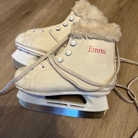 Rookie lasten luistimet, koko 29. Värit valkoinen ja pinkki. Kunto hyvä, terät vaatinee teroitukse