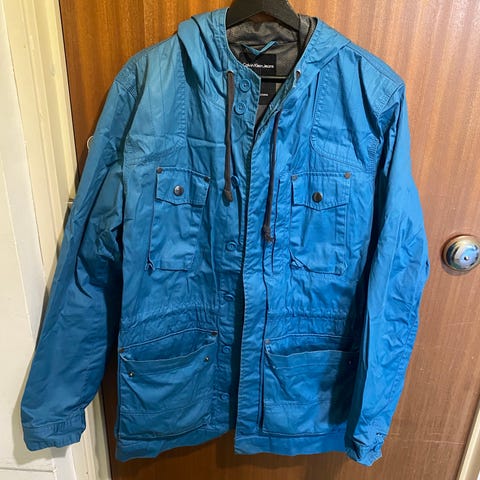 Calvin Klein hupullinen takki, koko M, valmistettu polyesteristä.