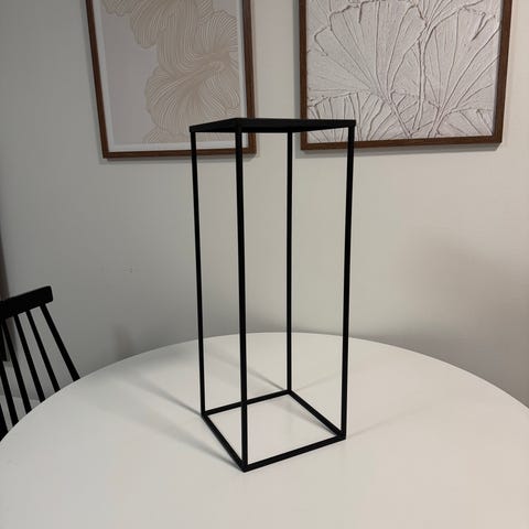 Stockmannilta vuonna 2023 ostettu kukkateline. Korkeus noin 22 cm kohtaan, johon tulee kukka. Korkeimpaan kohtaan korkeus noin 39 cm. Halkaisija noin 24 cm.