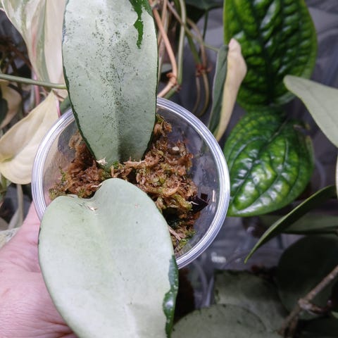 Juurtunut, kasvussa, tiheä lehtiväli, ei mikään varren rimppana. Valmis suurempaan purkkiin tukea pitkin kasvamaan.