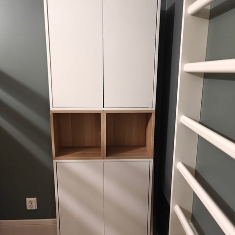 Ikean Eket-hyllyt, meillä näissä on säilytetty legoja. Näistä voi tuunata mitä vain, vaikka laittaa rullat alle niin saa liikkuvaksi laatikoksi. Nämä voi myös laittaa kiinni toisiinsa. Väriltään vaaleanharmaa. Yhteensä 20e