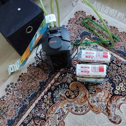 Tetratecin ex600 ulkoinen suodatin. Massat joudut hommaamaan itse, jotain voin halutessasi antaa mukaan. Ulostulon päätytulppa puuttuu, ei haittaa käytössä.