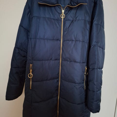Nätti ruskea toppatakki.polvipituinen .kainalo-kainalo 65cm. koko 56.mutta vasta 50-52..Hyvä istuvuus .hihan pituus normaali.