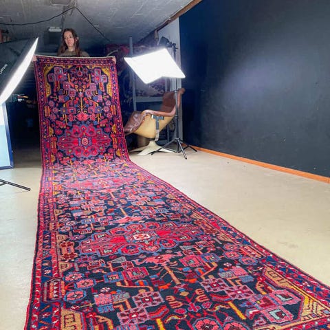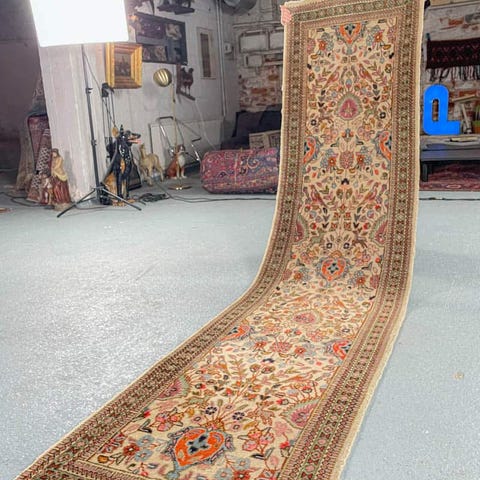 Näyttävä käsinsolmittu itämainen käytävämatto – 510 x 76 cm