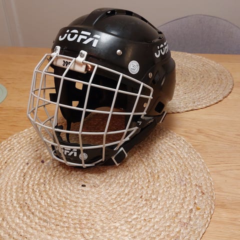 Jofa jääkiekkokypärä, koko 49-56. Kypärä on tarkoitettu jääkiekkoiluun ja siinä on säädettävä kokojärjestelmä. Väri tummanvihreä. Nouto Östersundomista tai postitus.