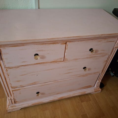 Käytön jälkeä on, vetolaatikoista alimmainen vaatisi uudet kiskot. Tukeva. Omat kantajat mukaan