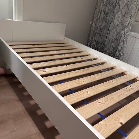 Mukaan tulee sälepohja, minkä koko on 80 x 200. Valmiiksi purettu osiin. Koirakoti. Nouto.