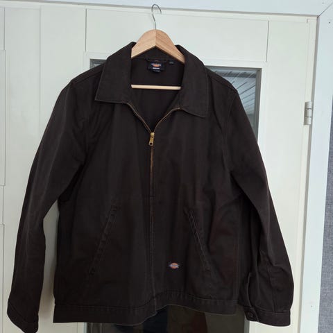 Toppavuorattu Dickies takki. Isot etu taskut, vahvikkeet olkapäissä. Tuoksuu nuotiolta, se on ominaisuus eikä vika.