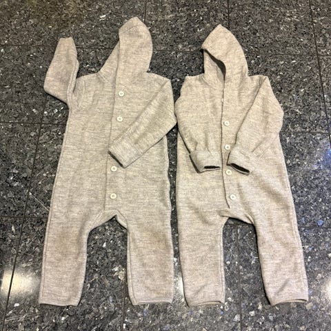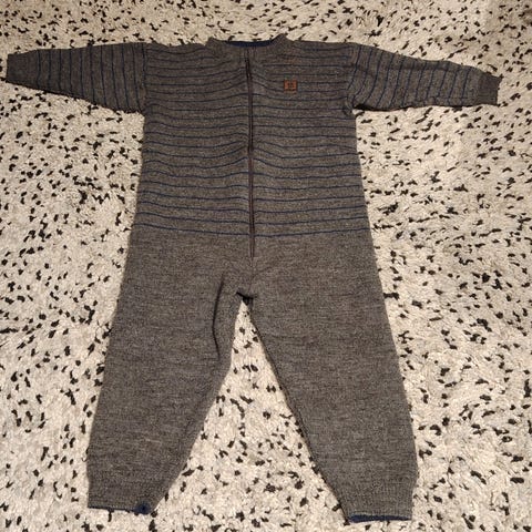 Harmaa raidallinen villahaalari, koko 86-92 cm. Villaa 50% akryyli 50 %
