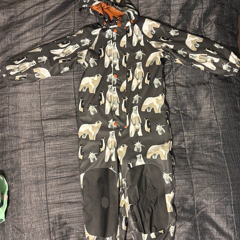 Vuorellinen Jonathanin sadehaalari koossa 116. Hyväkuntoinen, varahaalarina muutamasti käytetty ja kerran pesty. Loistava haalari kevään ja syksyn keleihin, kun erillisiä kuravaatteita ei tarvita.